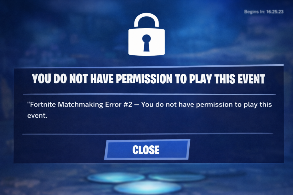 This version is different. It usually means you tried to join a competitive event or playlist without meeting the requirements. Epic says that when a tournament shows a lock icon, the event may not have started yet, or your account may not be eligible. So this Fortnite Matchmaking Error is not always a network problem.