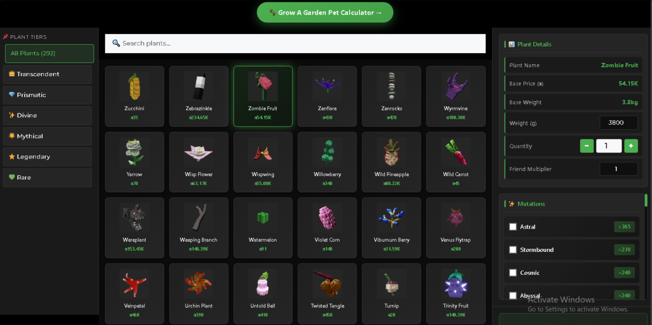 • The Grow a Garden Calculator tells you the exact value of pets, fruits, and trade items